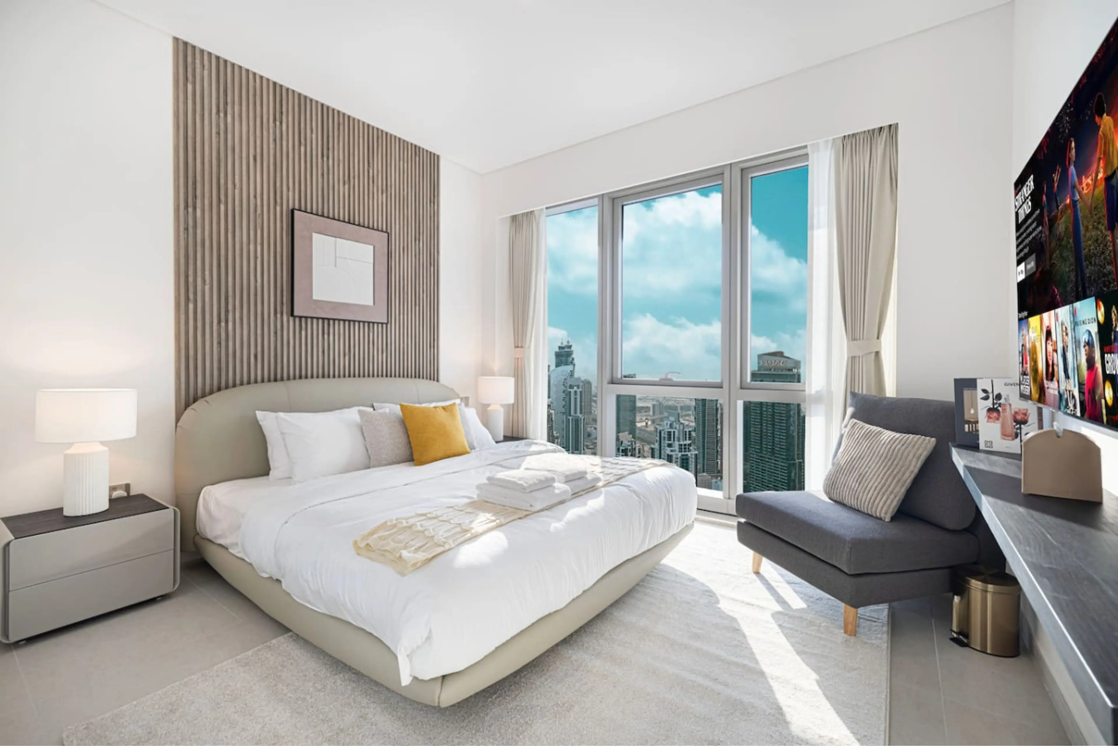 Mahogany presents: Enjoy elevated living in this luxury high-floor 2-bedroom apartment at Grande Signature Residences by Emaar in Downtown Dubai. Located on the 65+ floor with panoramic skyline and sea views, this spacious 1,200 sqft home sleeps up to 6 guests and offers premium comfort just steps ...