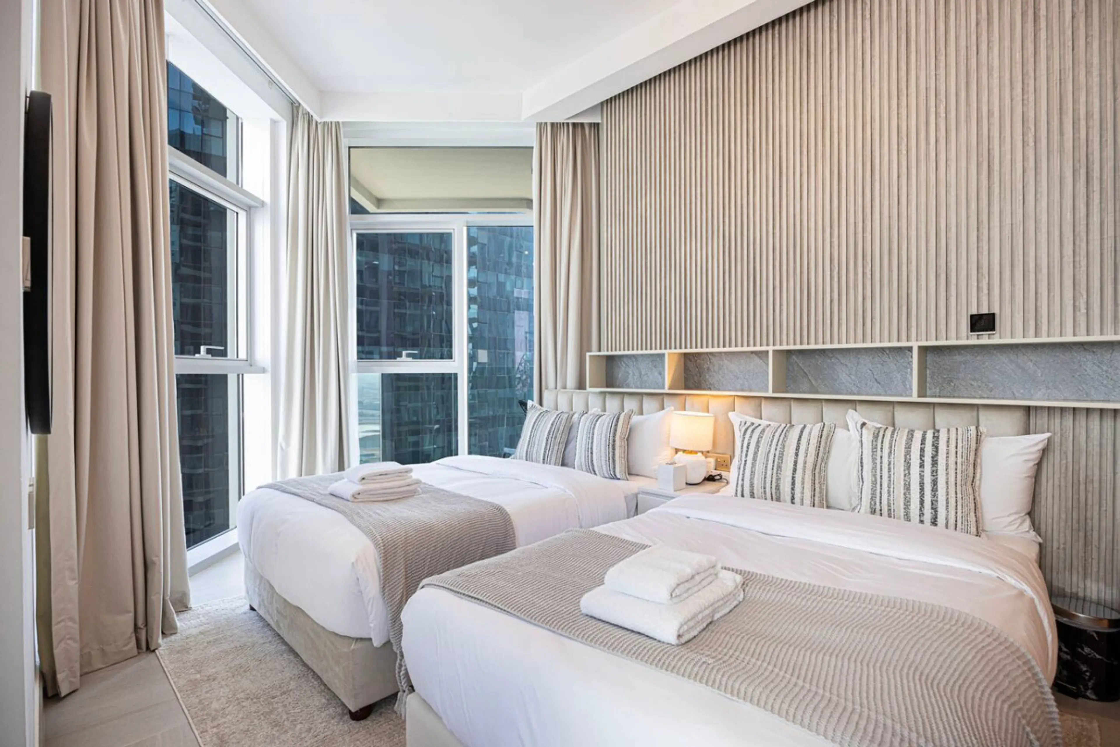 Mahogany presents: Experience designer living in this stylish 2-bedroom apartment in Urban Oasis by Missoni, Business Bay. Inspired by Miami luxury, this 900 sqft high-floor retreat sleeps up to 8 guests and features canal views, elegant interiors, and 5-star amenities — perfect for both relaxation...